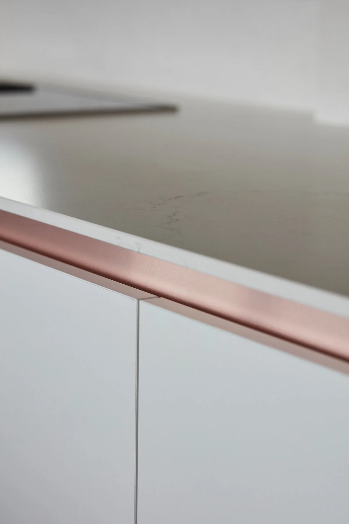 De flexibiliteit is voorzien om de open keuken ook visueel af te schermen. Zo ontstaat een publieke circulatiezone die aansluit bij de leefruimte. De lamellen schuifwanden zorgen voor de nodige privacy in de keuken, maar maken het tegelijk mogelijk om het licht en zicht te behouden.