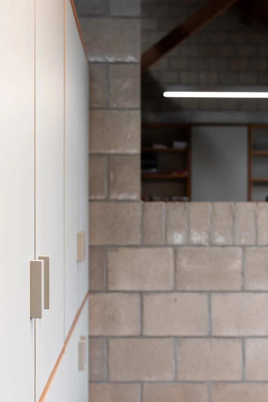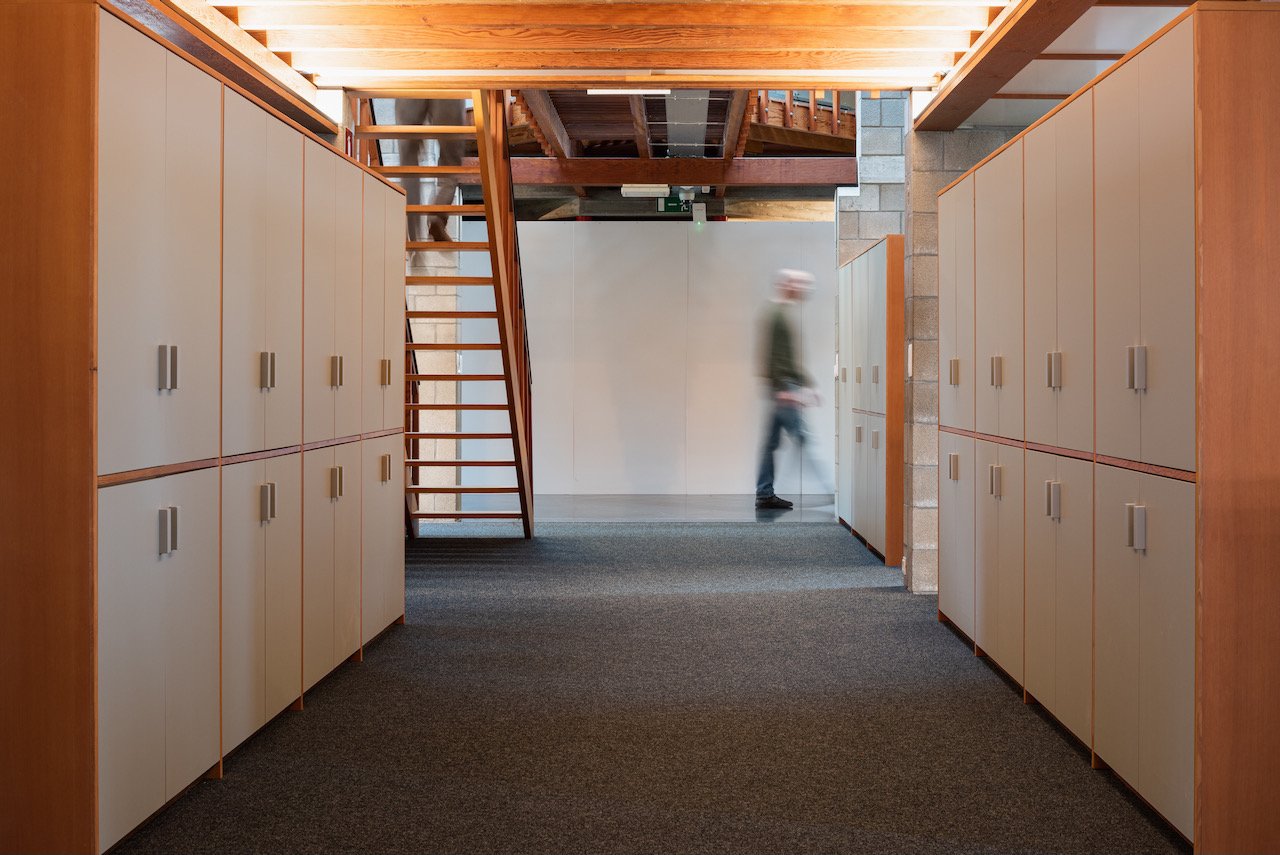 In plaats van de meer dan 150 bestaande kasten te vervangen door nieuw meubilair, kozen we voor een rigoureuze duurzame aanpak. We behielden de degelijke modulaire structuren en gaven ze een tweede leven.