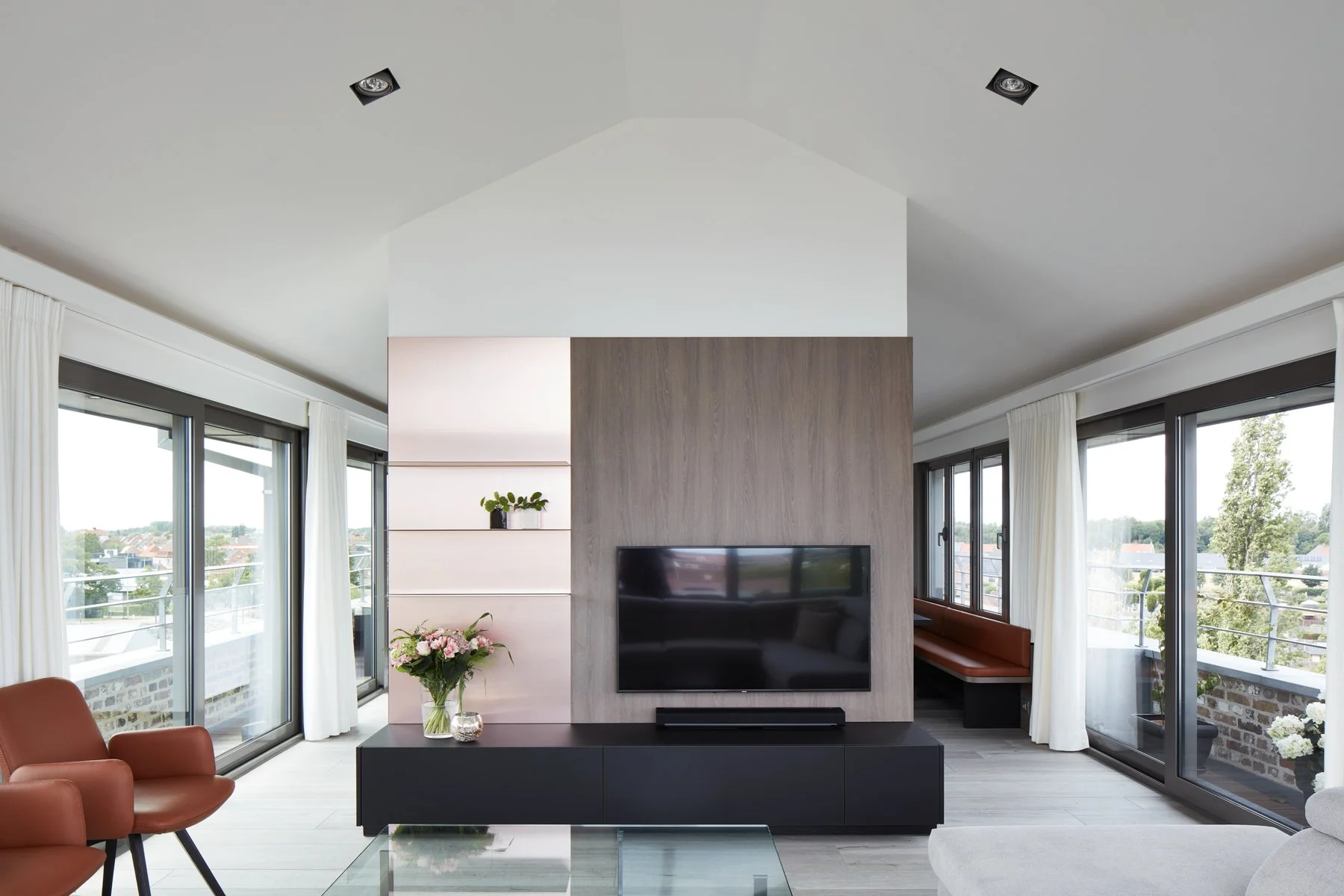 De Banmolens vormen een iconisch baken langs de Leie, een beschermd monument waarvan de wortels teruggaan tot de 12e eeuw. In deze unieke context mochten we de herinrichting van een penthouse ontwerpen.