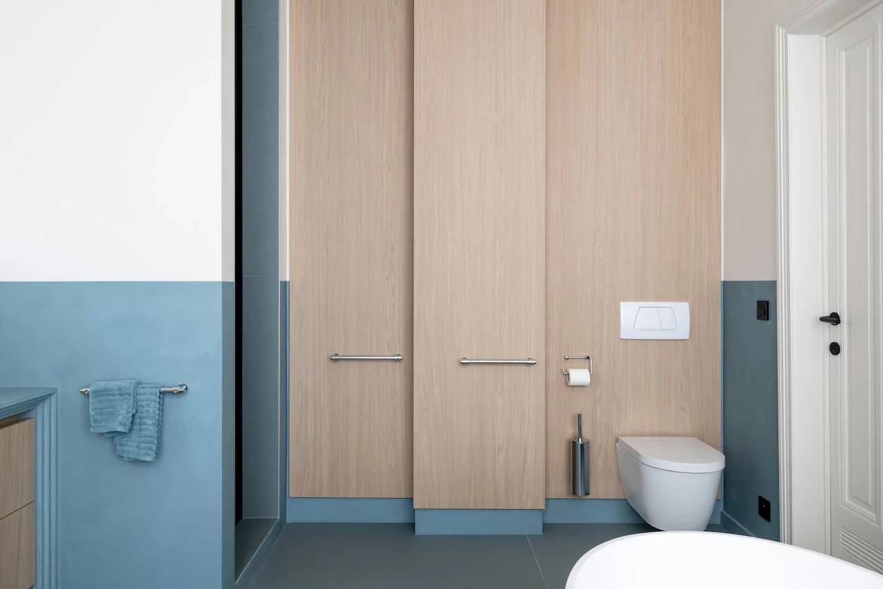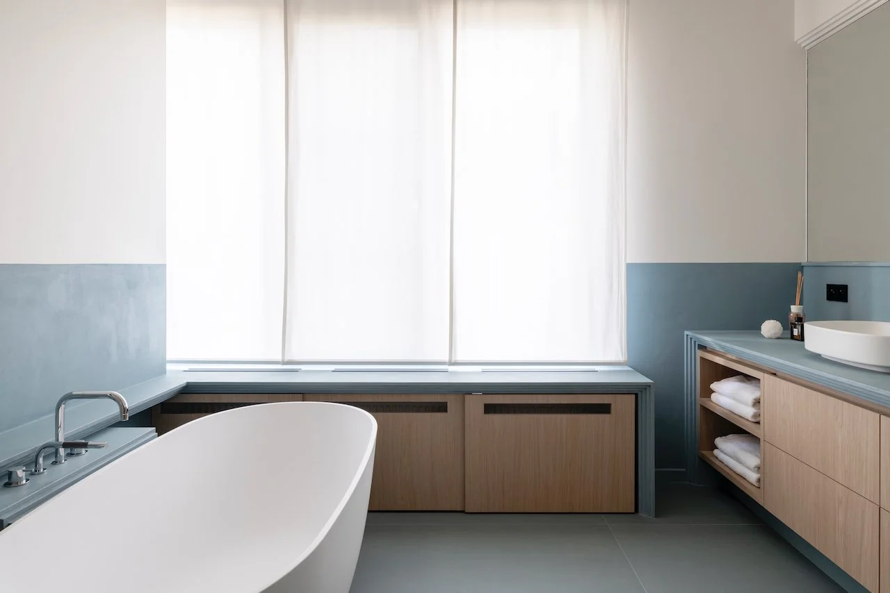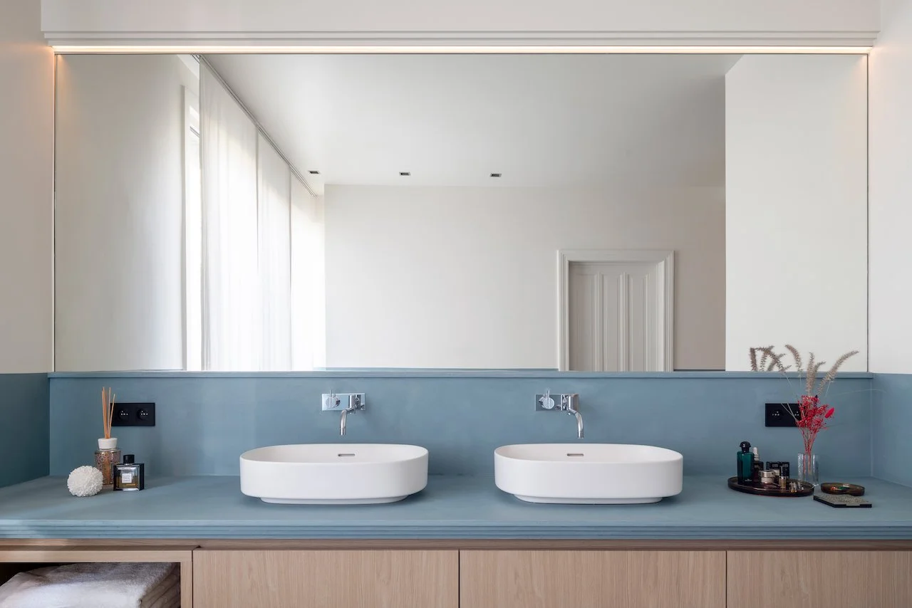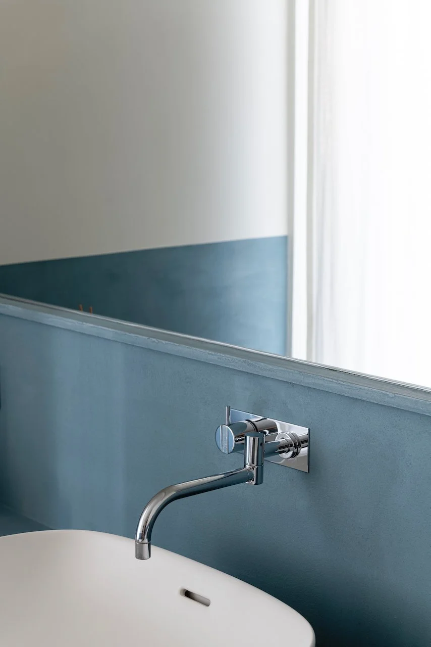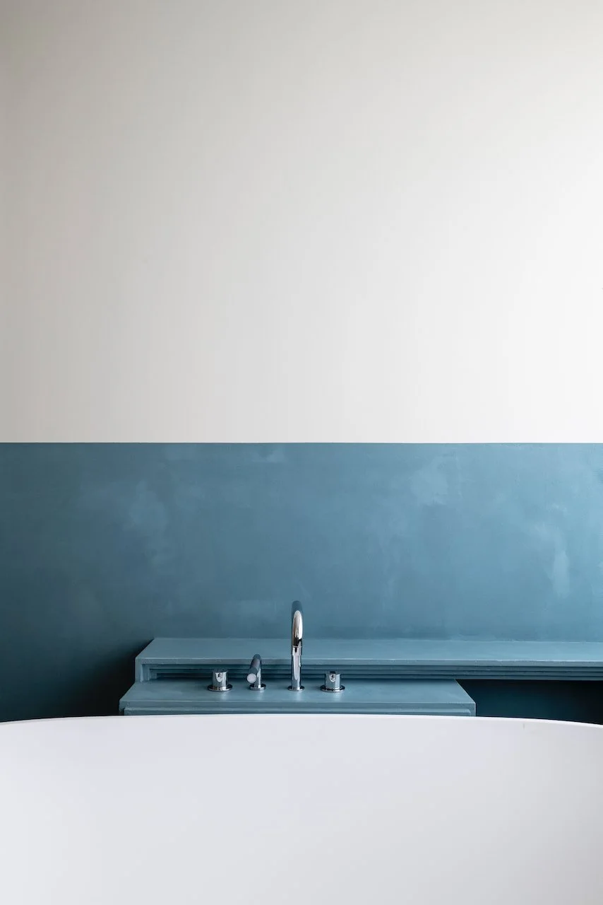 Zuiver blauw in de badkamer voor een fris en sereen moment van self-care.