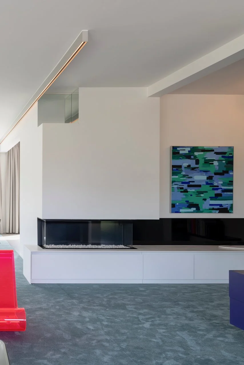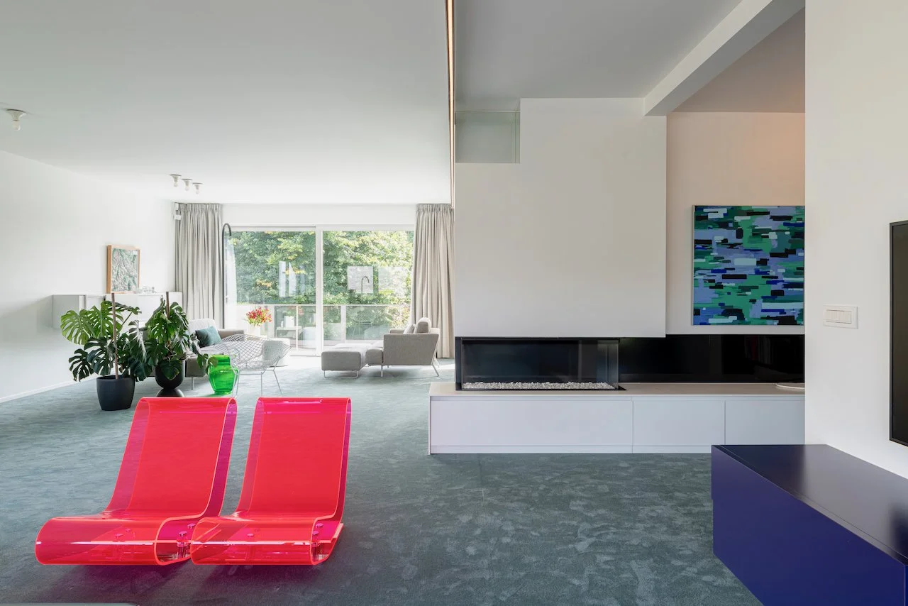 Naast de ruimtelijke ingrepen speelt kleur een cruciale rol in de identiteit van Woning PB. We kozen voor een palet dat zowel gedurfd als tijdloos is.