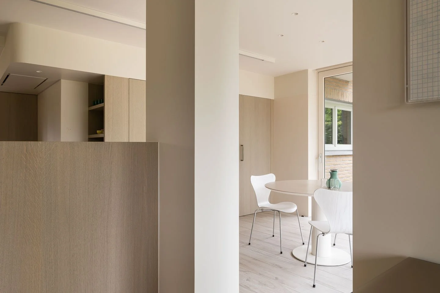 Door de architectonische lijnen van de oorspronkelijke woning te respecteren en te versterken, ontstond een logische, vloeiende indeling. Woning ZUNO is hiermee getransformeerd tot een serene omgeving waar warmte, licht en de tuin naadloos in elkaar overvloeien.