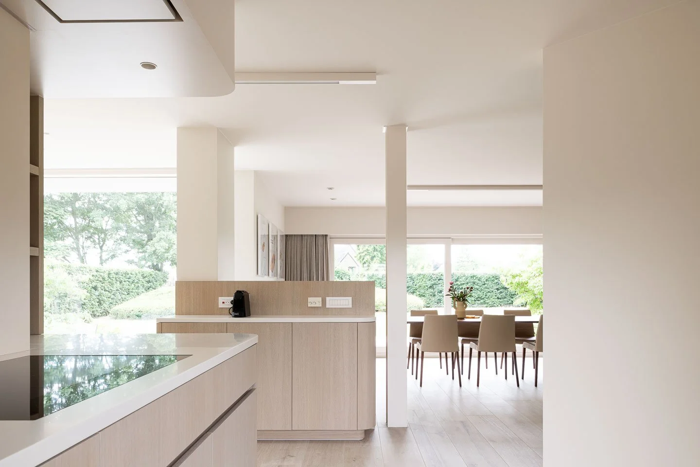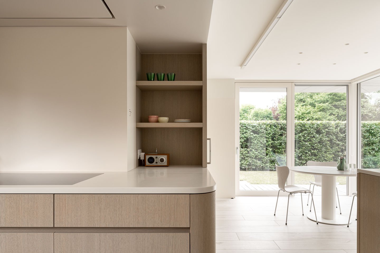 Naast de visuele verbinding met de tuin, optimaliseerden we de interne circulatie, met name in de keuken.